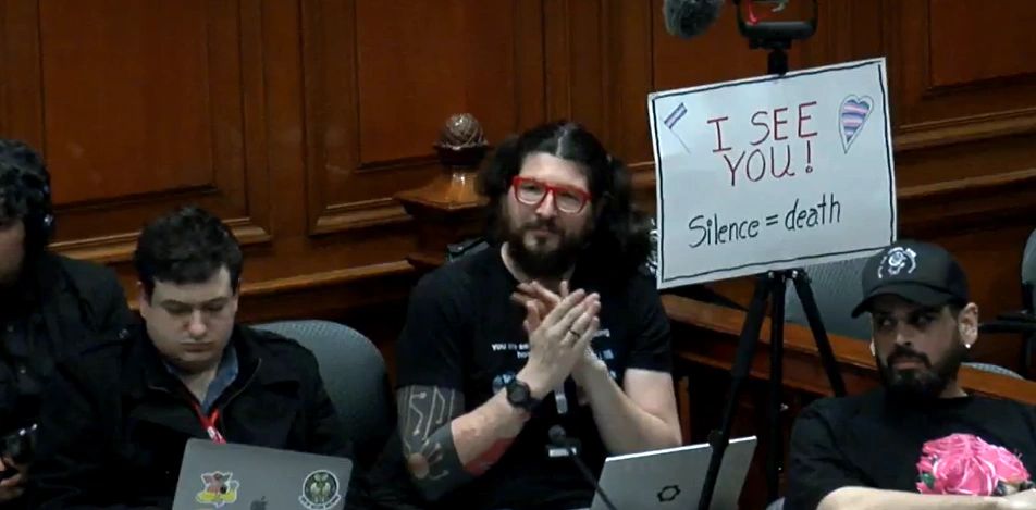 “Here we are again, still pleading, still fighting for basic dignity,” Cayden Davis said. “Stop being cowards. Do the right thing. Declare this city a sanctuary city.”